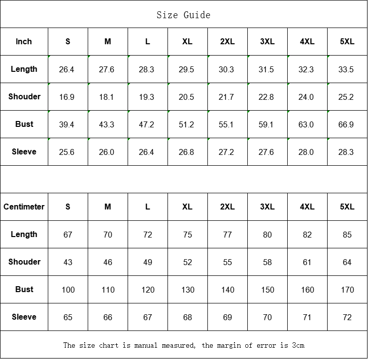 | Centimeter | S | M | L | XL | 2XL | 3XL | 4XL | 5XL |
